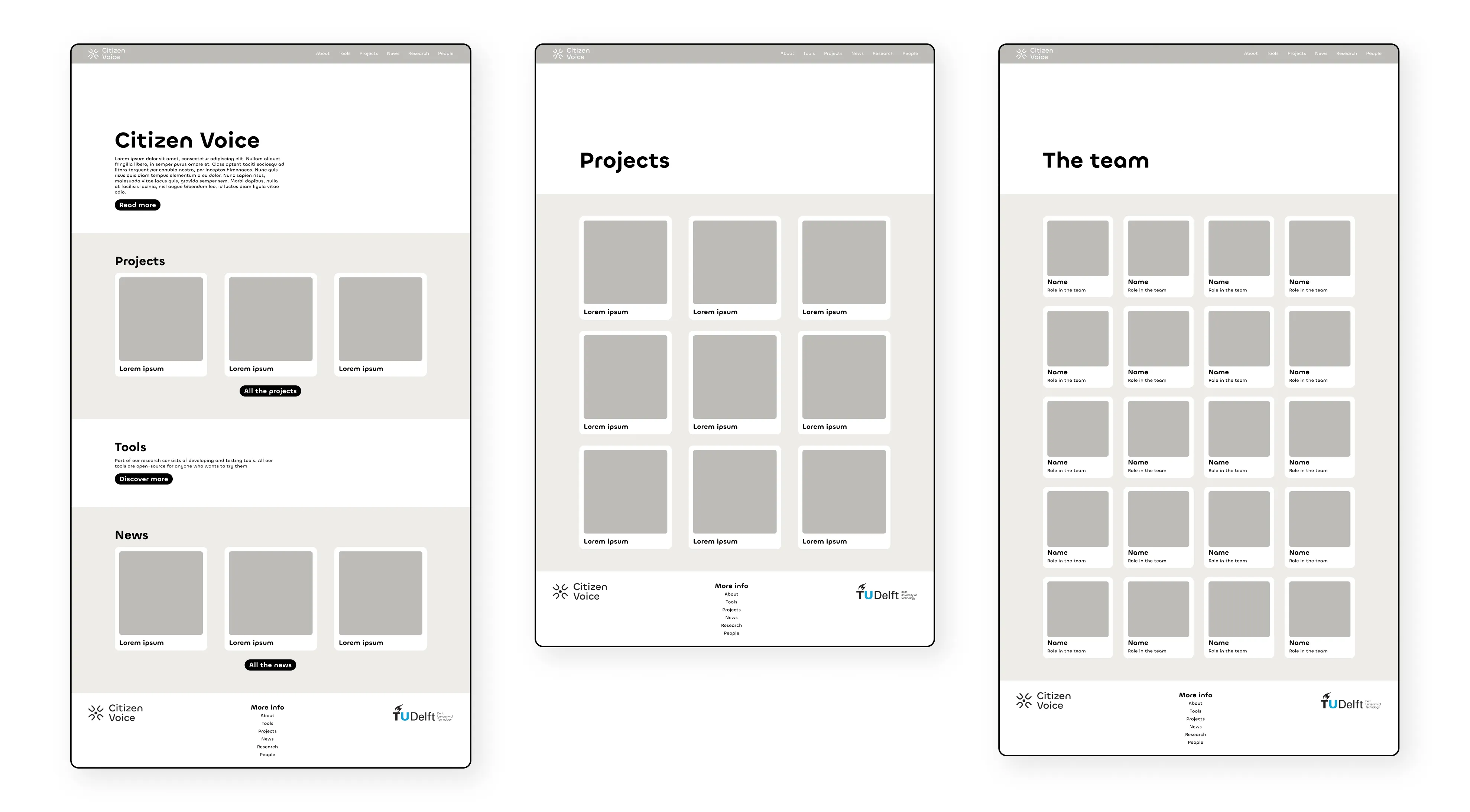 To create the digital portfolio, I first worked with the team to define the information architecture. I then designed the wireframes and final screens in Figma, the website is currently under development. The visual design aims to reflect the character of the team: a research- and academic-oriented initiative that is professional and organized, yet not afraid to show a human and colorful side.