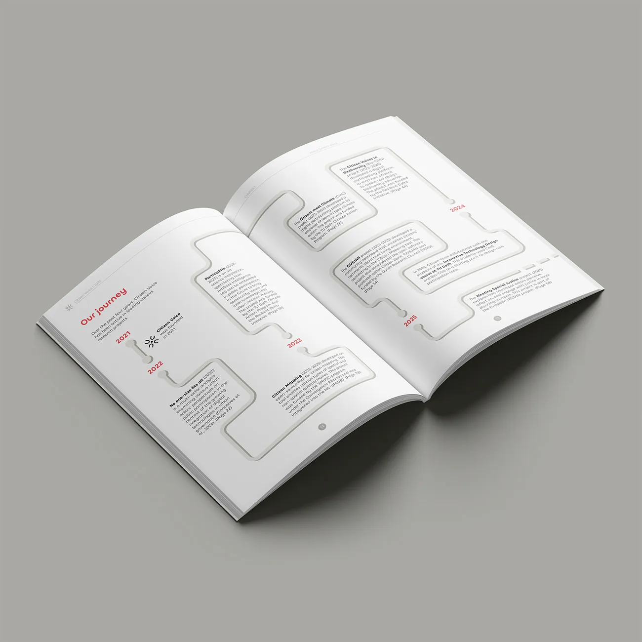 I was part of Citizen Voice, a research team at TU Delft, for two years. Alongside participating in research activities, I worked on implementing their visual identity and creating both digital and physical versions of their portfolio.
