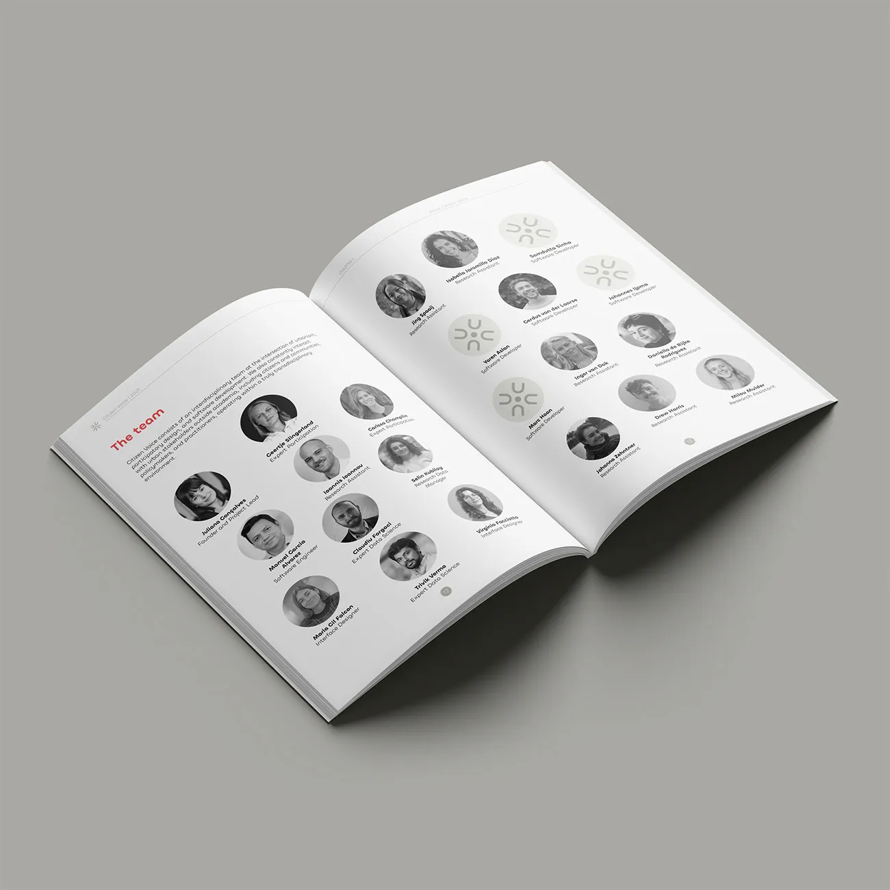 The print portfolio follows the same principles as the other products. It uses the pattern as the main visual theme and balances colors with clean, rounded shapes to convey a professional yet approachable identity.