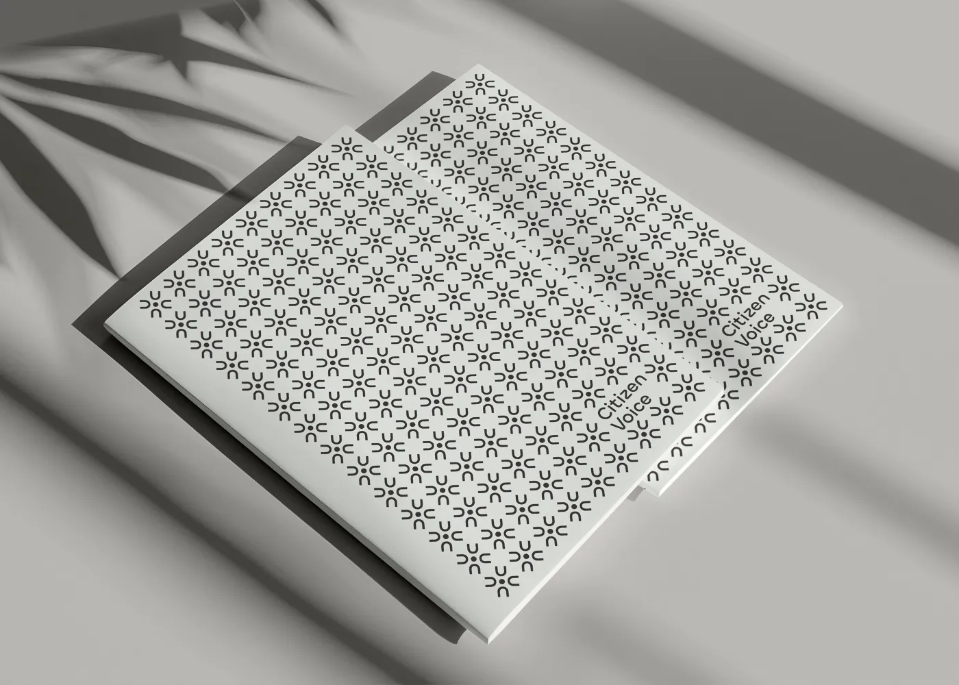 I integrated the visual identity by assigning clear functions to the brand colors and creating a pattern using the team’s logo. This pattern reflects the nature of Citizen Voice: a diverse group of people united by a common goal, each contributing their own skills and personality. The pattern is the main visual element of the brand across all products.